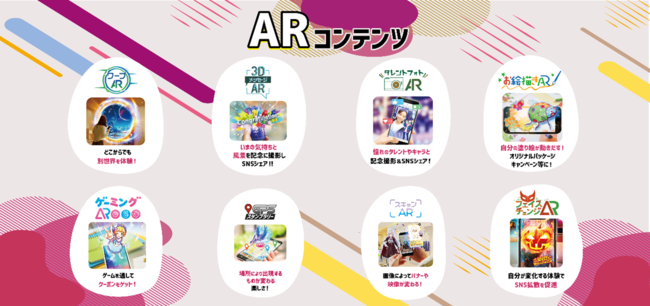 当社では、年間50000点以上のイラスト制作と昨対比250%のデジタルコンテンツ事業を展開している強みをいかし、新商品・サービスの告知の手段としてARコンテンツを開発し様々な企業に提供しています。