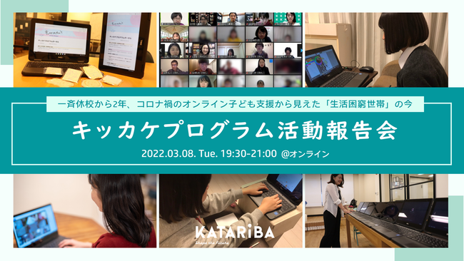 認定特定非営利活動法人カタリバ(本部:東京都杉並区、代表理事:今村久美、以下カタリバ)は、2022年3月8日(火)、教育格差や子どもの貧困に関心のある教育関係者・一般生活者の方を対象に、生活困窮世帯へPCとWi-Fiを無償で貸出し、オンラインでの学習支援を行う「キッカケプログラム」の活動から見えてきた、コロナ禍の子どもの現状や、オンライン支援の可能性、そしてこれからについてに考えるオンラインイベントを開催します。また今回、本イベントを報道関係者に公開することになりましたのでお知らせします。