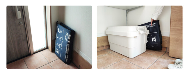 当店の宅配ボックスは、簡単に折りたたむことができるので、使用しない時の省スペース収納が実現しました。
