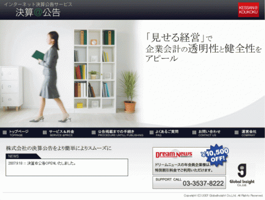 インターネット決算公告サービス『決算@公告』が10月3日にオープン!!