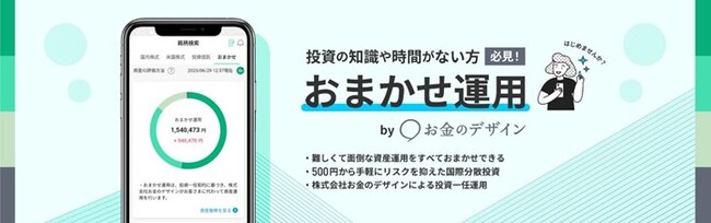 先進的なデジタル資産運用を提供する株式会社お金のデザイン(本社:東京都千代田区、代表取締役社長:山辺 僚一、以下「お金のデザイン」)は、東海東京フィナンシャル・ホールディングス株式会社の子会社CHEER証券株式会社(代表取締役社長 小林 伸行、以下「CHEER証券」)との協業により、500円からの資産運用が可能なロボアドバイザー「おまかせ運用」の提供を開始したことをお知らせいたします。