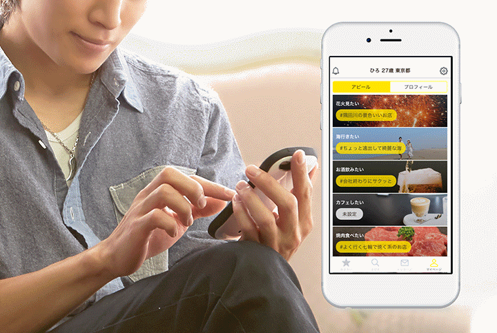 アプリの特徴として、女性はアプリ内のウィッシュリスト(興味あること・好きなこと)から関心度の高いアクティビティや、イベントなどを追加することで、男性からアピールが届くようになっています。また、女性から男性へのコミュニケーションはYES・NOの二択ではなく、期待度を伝えることが出来る☆(星)を用いて5段階で気持ちを伝えることができます。