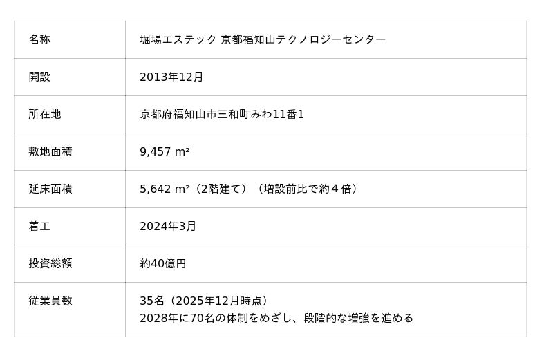 さらに、本施設の拡張と京都福知山工場の立上げに伴い、研究開発から生産までを一体で担う新たな拠点として、地域の雇用創出と人財※4定着に貢献します。