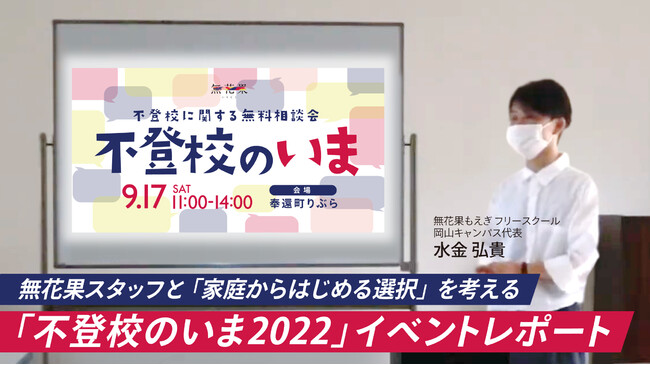 株式会社コノテ(所在地:岡山県岡山市 代表取締役:山田邦明、以下「当社」)が提供する無花果もえぎ フリースクールは、9月17日(土)に「不登校のいま 2022 ~家庭からはじめる選択~」を開催いたしました。今回はその実施レポートをお届けいたします。