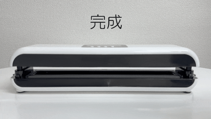 本機器は2分割になっており、間に真空パック袋を挿入します。