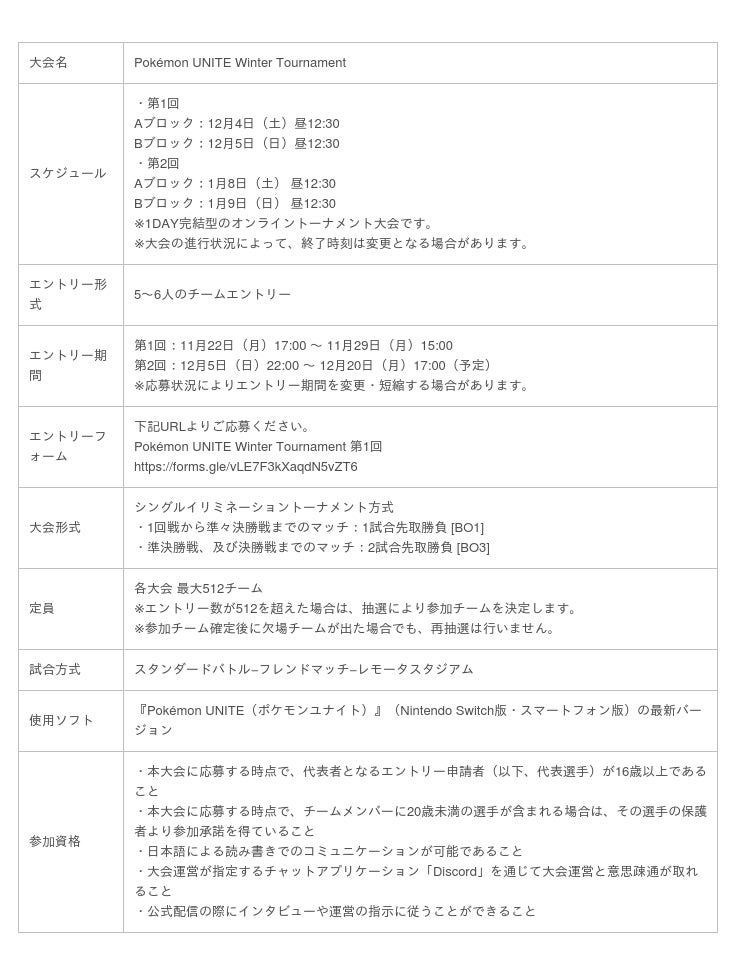 eスポーツのオンライン大会プラットフォームを提供する株式会社JCG(所在地:東京都品川区、代表取締役CEO:松本 順一 以下、JCG)は、株式会社ポケモンが提供するチーム戦略バトルゲーム『Pokemon UNITE(ポケモンユナイト)』の1DAY完結型の公式オンライントーナメント大会「Pokemon UNITE Winter Tournament 第1回」を、株式会社ポケモンの協力のもと12月4日(土)・12月5日(日)に開催いたします。