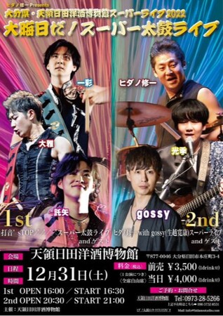 ヒダノ修一Presents 大分県・天領日田洋酒博物館スーパーライブ「大晦日だ!スーパー太鼓ライブ」12月31日(土) 超豪華スペシャルライブ2連発!!/天領日田洋酒博物館 主催