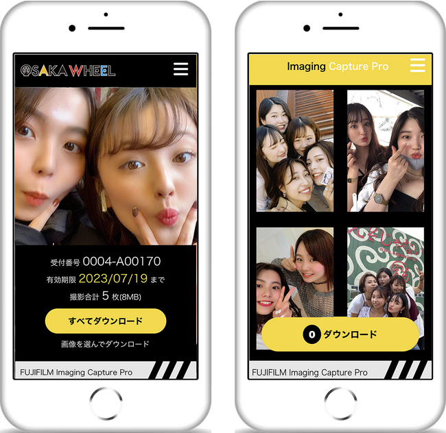 撮影が終了したら、モニター及びレシート用紙にQRコードが表示されていますので、お客様のスマホでQRコードを読込むと撮影した画像は全て無料でダウンロードできます。