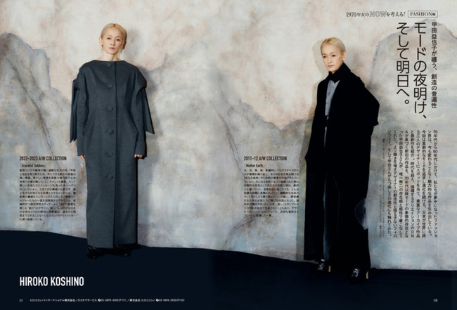 70年代から80年代にかけて、私たちが夢中になったファッション界は、今も変わることなく魅力的な作品を生み出している。今回は革新的なモードを追求し進化を続ける、日本が世界に誇る三人のデザイナーにスポットを当て、貴重なアーカイブ作品と最新作を紹介。時代を超え、循環するクリエイションのDNAが息づく新旧の作品を、70年代以降モードの象徴的存在となった甲田益也子さんが、唯一無二の存在感と感性で着こなしてくれた。より輝きを増すデザイナーの創造性と揺るぎないフィロソフィー。そして甲田さんがもつ美しさの進化にも触れてみた。