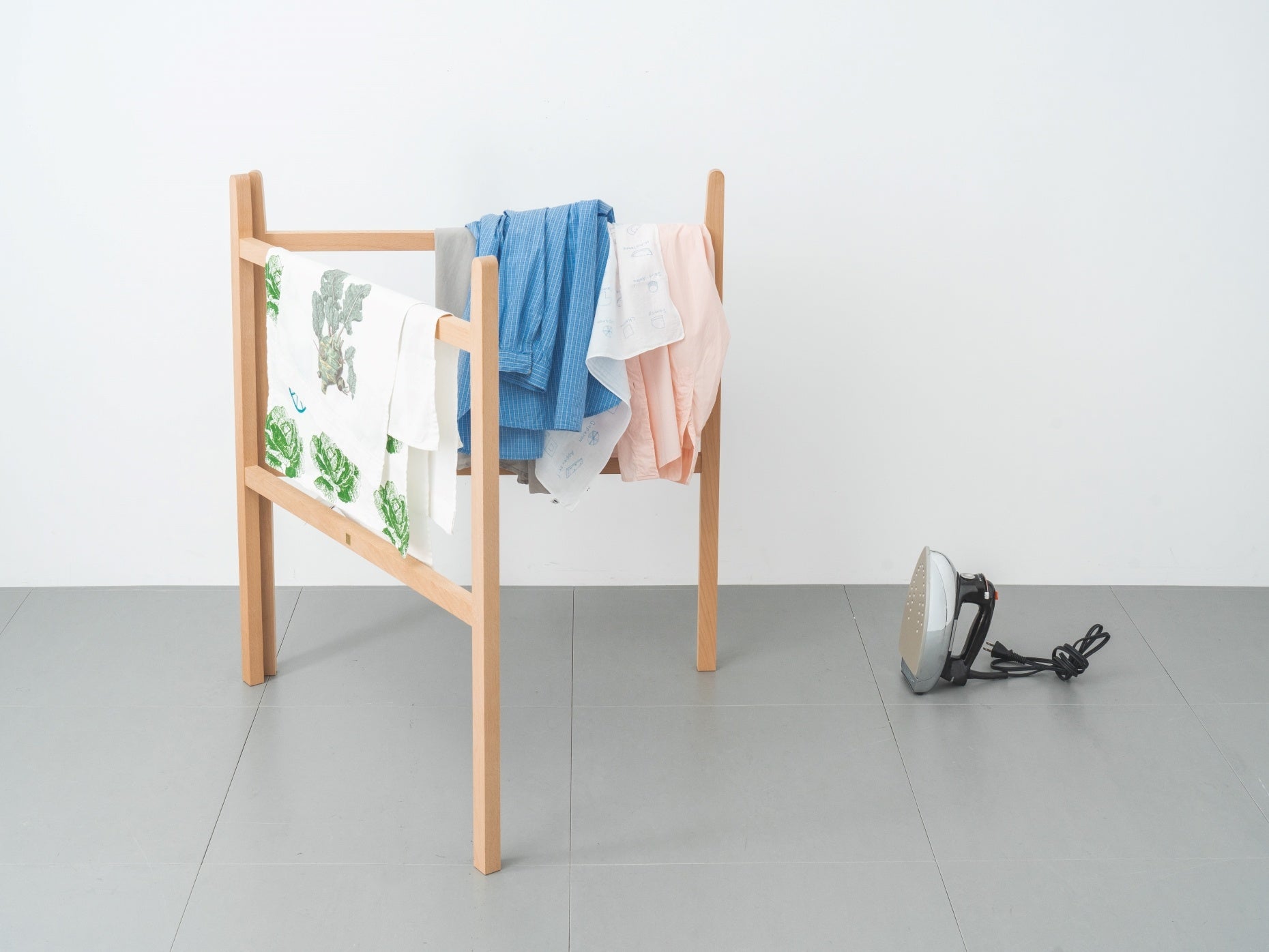 アイロンをかけたハンカチやクロス、Tシャツ等の一時置きの場所として使うこともできます。木製なので濡れた洗濯物等は避ける必要がありますが、リネンやコットンのタオル、その他布製品とは相性◎。リビングのソファ周りに置いてブランケットを軽く掛けておくと、使いやすい上に空間に柔らかさが生まれます。