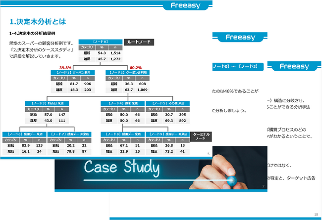 「決定木分析」について、基本知識、分析の具体的な進め方を、事例とともに分かりやすく解説しています。