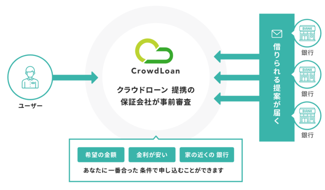 クラウドローンは、貸し手である銀行と借り手である個人を、オンラインでつなぐマッチングプラットフォームです。