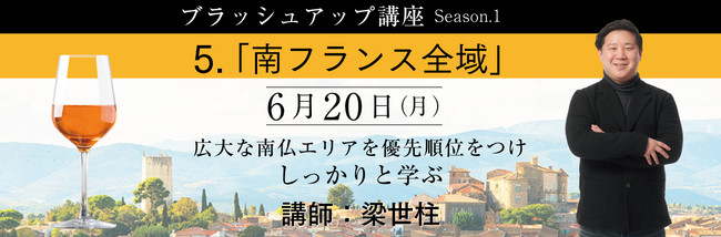 完全オンラインのワインスクール ヴィノテラスが、【ソムリエ・ワインエキスパート ブラッシュアップ講座Season.1 南フランス 全域編】を開講致します。世界のベストソムリエ50に選ばれた講師梁 世柱が徹底解説致します!!