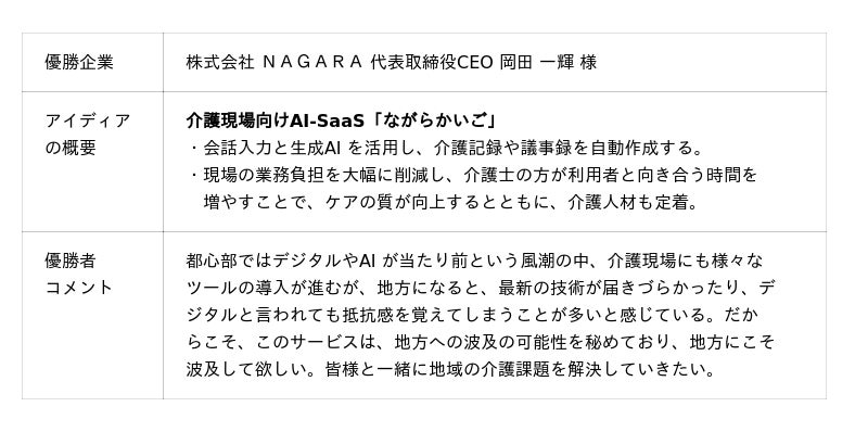 〜 栄えあるピッチコンテスト優勝は株式会社NAGARA〜