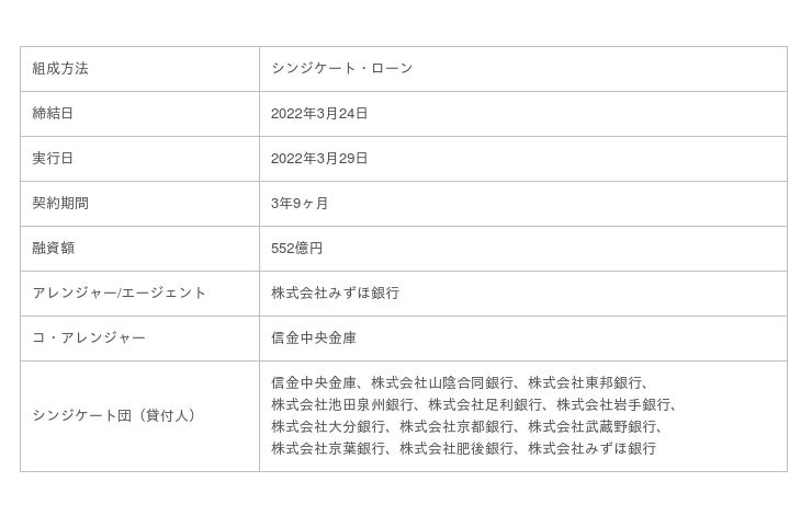 シンジケーション方式での「サステナビリティ・リンク・ローン」契約の締結について