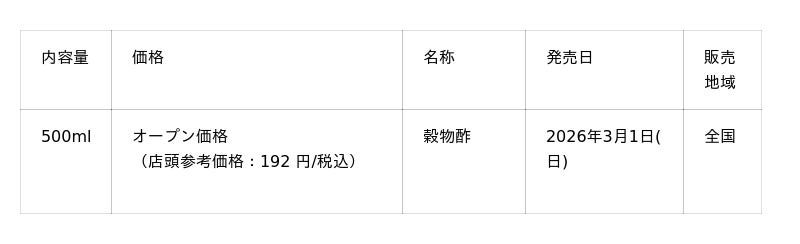 (※1)“穀物酢”とは当社製品のうち名称を「穀物酢」としている商品を指します。