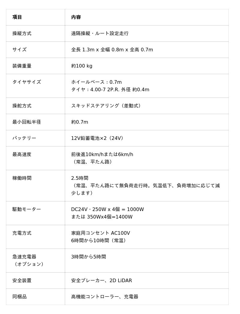 [表: https://prtimes.jp/data/corp/55567/table/52_1_4321d4bc6821a64c7f6e58959d47d2a4.jpg?v=202603041215 ]※価格は使用用途・機能・装備に応じてのお見積りとなります。