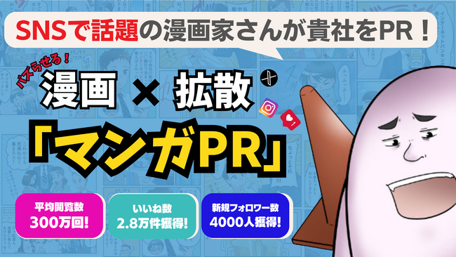 マンガPRとは、SNS総フォロワー数5万人〜100万人超えの漫画クリエイターを活用し、企業、商品・サービスのPR投稿を実施するサービスです。
