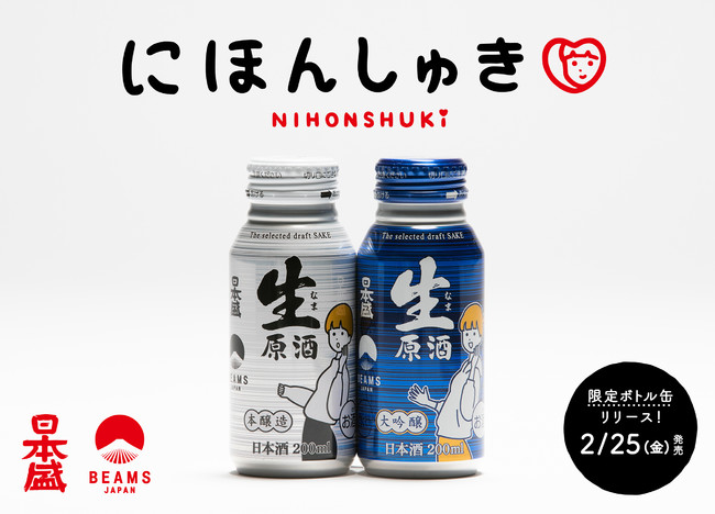 日本盛株式会社(本社:兵庫県西宮市、代表取締役社長:森本 太郎)は、BEAMS JAPAN(ビームス ジャパン)と昨年12月からスタートした両社初のコラボレーションプロジェクト「にほんしゅき」の第2弾商品として「日本盛 生原酒200mlボトル缶 BEAMS JAPANデザインボトル(本醸造、大吟醸)」を2022年2月25日(金)より期間・数量限定で発売いたします。本プロジェクトは、さまざまな日本文化の魅力を2016年から発信してきたBEAMS JAPANと共に、130年以上日本酒における革新を続けている当社の間で「日本が誇る文化資源である日本酒を、若者たちに日常で楽しんでもらいたい」という、相互共感が生まれたことで実現をいたしました。
