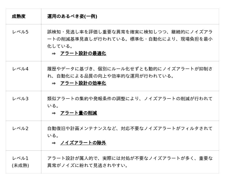 表1 クラウド運用成熟度モデルにおける作業要素の一例 (アラート設計)