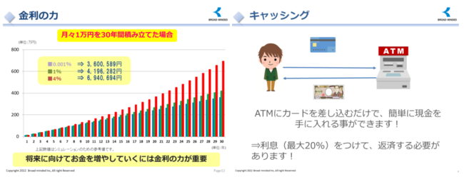 「金融の力を解き放つ」をパーパスに掲げ、保険・証券・住宅ローンと複数の金融商品を横断して1社で取り扱い、人々のライフプラン実現をサポートするブロードマインド株式会社(本社:東京都渋谷区 代表取締役社長:伊藤清 証券コード:7343 以下:当社)は、2022年11月30日に特別支援学級の教員の方へ「金融教育セミナー」を実施いたしました。