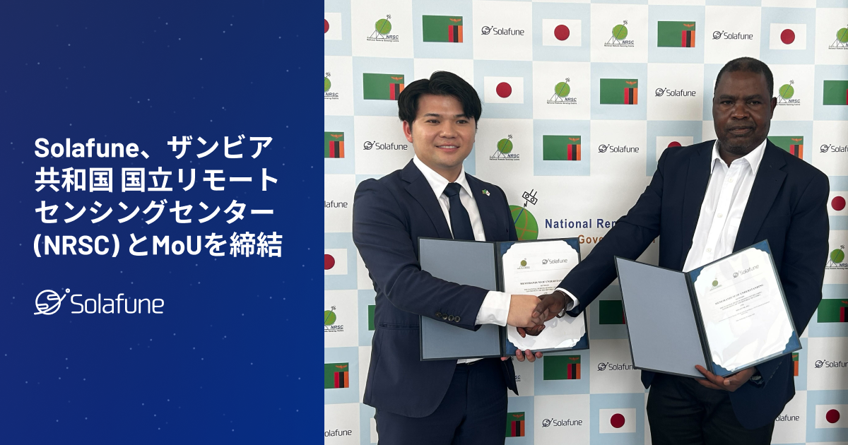 衛星データ解析技術の開発・提供および衛星データ解析プラットフォーム「Solafune」の運営を行う株式会社Solafune(代表取締役CEO:上地練)は、2026年1月28日にザンビア共和国政府の政府機関であるNational Remote Sensing Centre(NRSC)と、リモートセンシング(RS)、地理情報システム(GIS)、人工知能(AI)技術を活用した地理空間アプリケーションの開発・運用における協力促進に関する正式な覚書(MoU)を締結しました。
