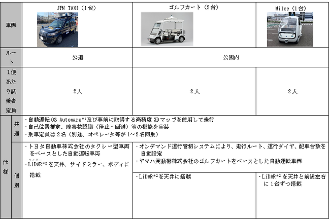 3種類の自動運転車両を使用