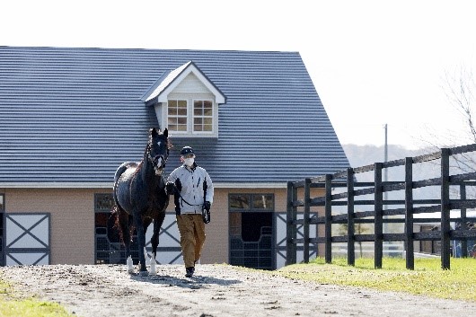 2年おきに優駿スタリオンステーションとイーストスタッドを移動して繋養されているため、また近々北海道浦河町にあるイーストスタッドに移動するとのこと。牧場スタッフさんからは「また2年間、身体に気を付けて頑張ってもらいたい」と温かいコメントがありました。