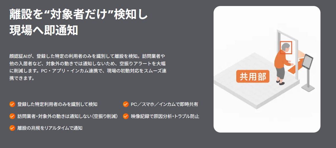 AIが行動の変化を検知し、職員へ通知することで、 屋外に向かう兆しにこれまでより早い段階で気づけるようになりました。