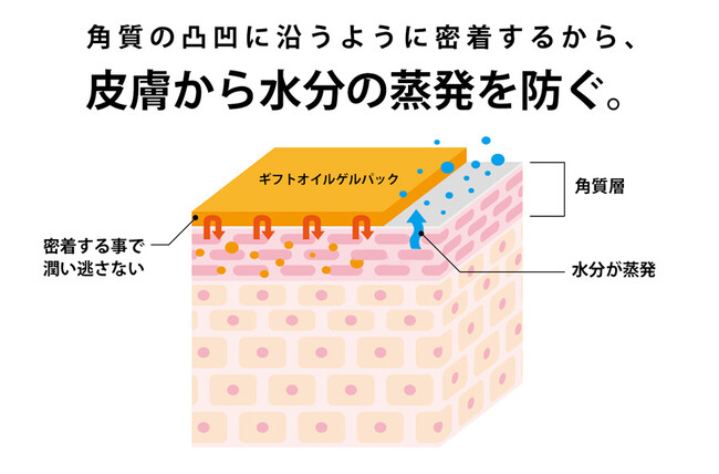肌への浸透力が高いオイルをゲルシート化。天然オイルが角質層まで届き、角質の凸凹に沿うように密着するため、皮膚からの水分の蒸発を防ぎます。美容成分が肌にじっくり浸透し、刺激を与えることなくお肌を整えます。お肌に優しい日本製100%の成分を厳選。天然オイルが素肌に届いてうるおいを逃さない高濃度パックです。