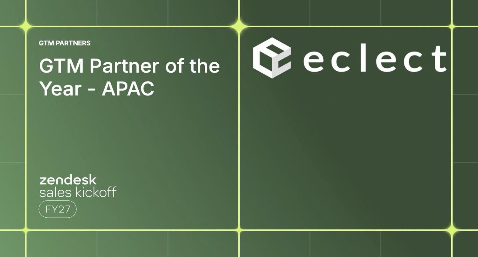 株式会社エクレクト(本社:東京都世田谷区、代表取締役社長:辻本真大、以下エクレクト)は、世界10万社以上が導入するカスタマーサービスソフトウェア「Zendesk」のパートナー表彰式において、APACエリアトップである「GTM Partner of the Year - APAC 2026 」を受賞しました。