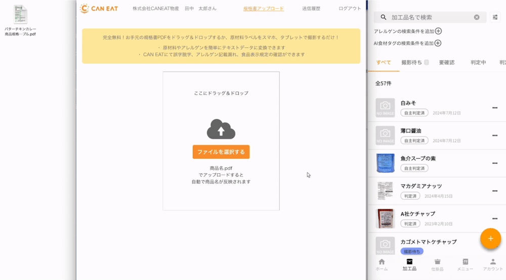 株式会社CAN EAT(本社:東京都新宿区、代表取締役CEO:田ヶ原絵里、以下「CAN EAT」)は、同社が運営する外食事業者向けアレルギー対応支援サービス「アレルギー管理サービス」において、アレルギー情報の判定に必要な商品情報を仕入先の事業者が直接アップロードできる「仕入先アップロード機能」のβ版をリリースしました。