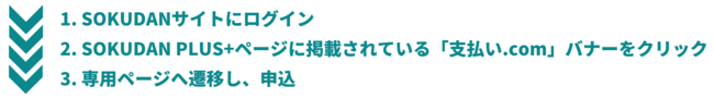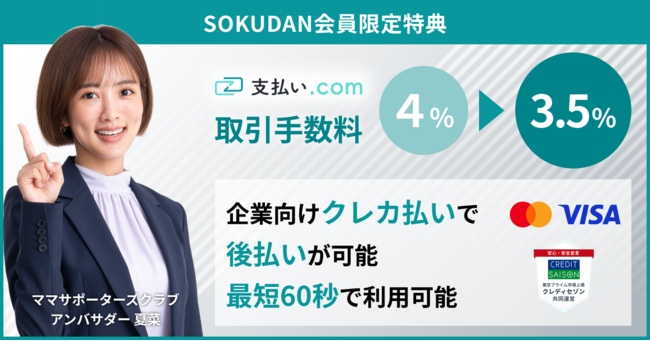 SOKUDAN会員限定特典として「支払い.com」の取引手数料 4% → 3.5%でご利用いただけます。