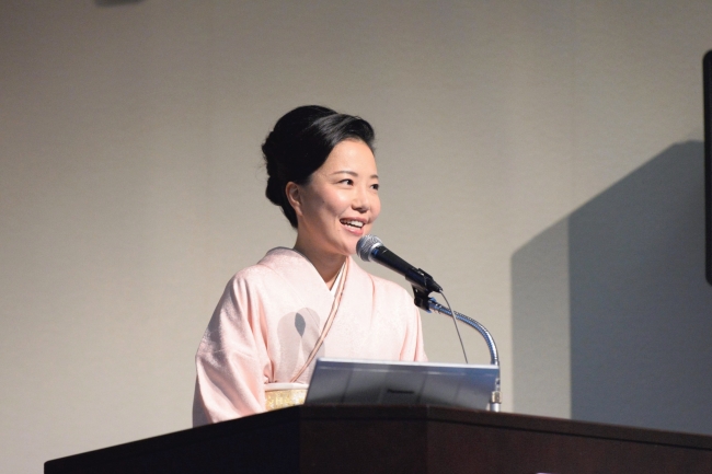 主催者挨拶には都築 明寿香学長が登壇し、「ご来場いただいた皆様をはじめ1人でも多くの方とともに、日本企業が本来持っていた経営哲学や指標に注目しつつ、企業の経済活動を通じての持続可能社会の実現に向けての提言、また、ソーシャルインパクトや社会貢献を可視化する指標形成等、今後の日本の発展と世界への貢献のために求められるリーダーと経営の在り方について考える機会となりましたら、大変幸いに存じます。」と本フォーラム開催に喜びを述べ、今後の日本の経営の在り方について若年層への期待を寄せました。