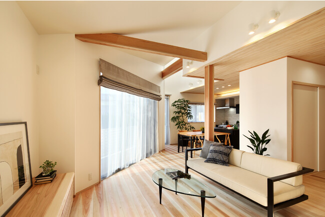 構造材や内装材に木の香りと温もりが心地よい、銘木「吉野杉」をふんだんに使用。また、調湿性に優れ、結露の防止や有害物質の吸着機能がある「珪藻土」の塗り壁で仕上げています。