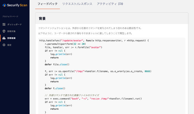 ・脆弱性の概要解説、該当箇所の修正方法の提案、トリアージに必要な情報を提供します。