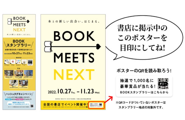 「BOOKスタンプラリー」は、2022年10月27日(木)より全国で一斉に開催される読書推進キャンペーン「本との新しい出会い、はじまる。BOOK MEETS NEXT」の一環として実施されます。