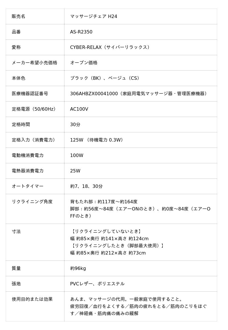 CYBER-RELAX マッサージチェア H24 AS-R2350