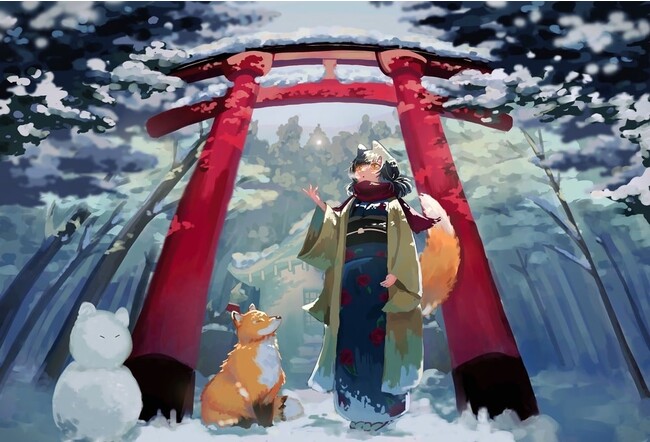 どこか神秘的な雰囲気がありつつ、狐がもふもふでとっても可愛いです。