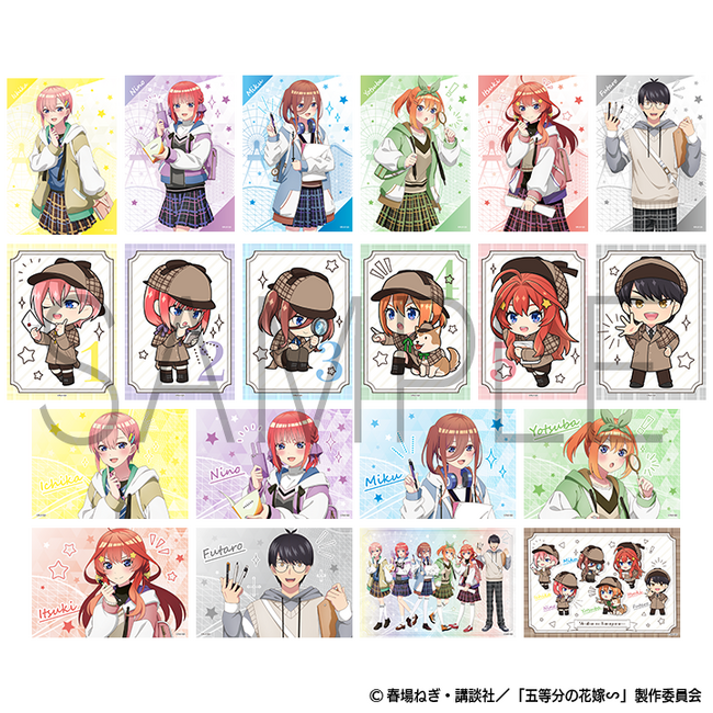 謎解きツアーに合わせ、謎を解き明かすためのアイテムを手にした探偵スタイルに身を包んだ中野家の五つ子&風太郎の描き下ろしイラストを使用した新作グッズが発売されます。