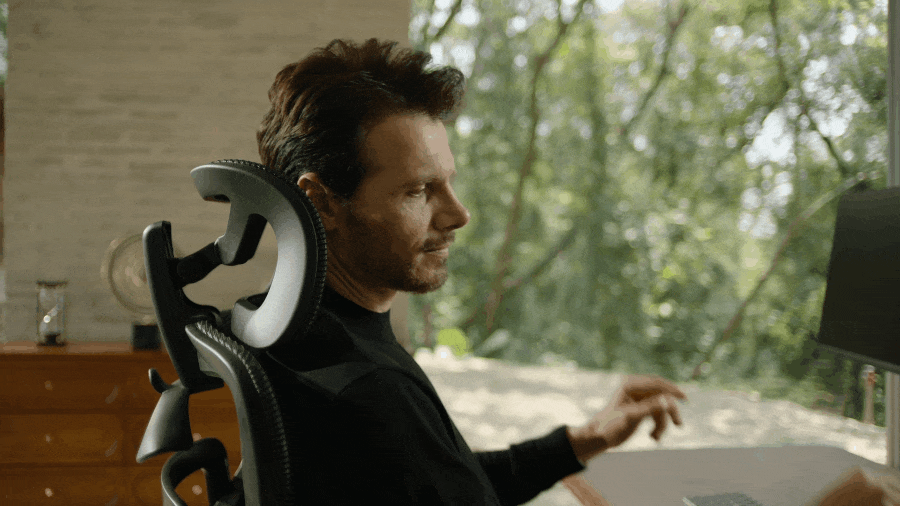 少なくとも体重の10%の負荷が常にかかっている首。「COFO Chair Premium 2」のヘッドレストは、上下と軸の違う2つの角度の3Dの可動域で、ユーザーの頭部にピッタリの場所にヘッドレストを設置可能。疲れた首を優しく支えます。