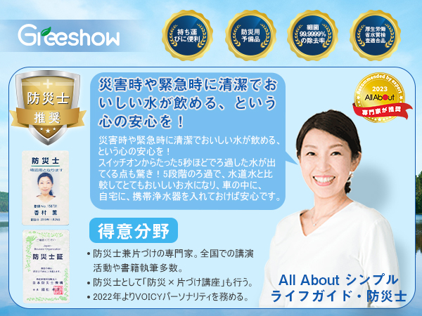 Greeshow 2801携帯浄水器-家庭での防災用の必需品だが、外遊びの必需品でもある。