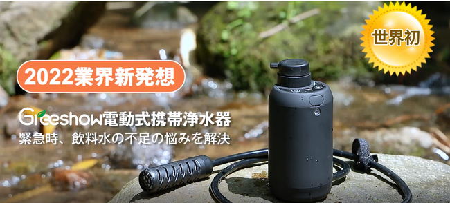 1.自然の水を、飲用可能な水に変えることのできるデバイスが、クラウドファンディングサイトにて先行発売致します。水源から1メートル離れた場所から、リチウムバッテリー駆動で自動的に取水が出来るので、非常に便利な上に、安全です。