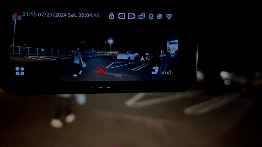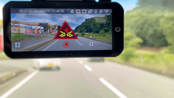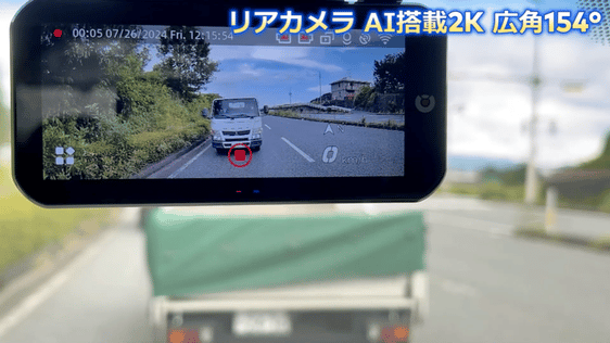 後方の車両接近、画面上の赤枠表示とアラーム音で警告、2K高画質で、万が一の追突事故も鮮明に記録。証拠としての信頼性も抜群です。