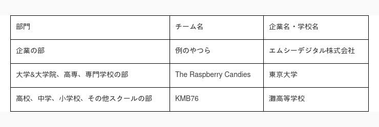 本大会は事前にプログラムを提出して審査する方式ではなく、全チーム同時にオンラインでプログラミングを行う方式となっています。チームを構成する3名は、出題された問題を解くプログラムを90分間にそれぞれ4つずつプログラミングし、合計点数と解答速度で他のチームと順位を競います。