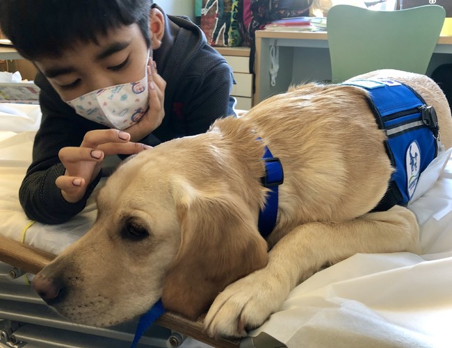 ときどき訪れて短い時間だけふれ合うのではなく、同じ犬がいつもそこにいて多くの時間を繰り返し過ごせることが、入院治療している子どもたちの心の励みになります。