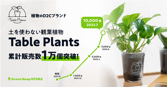 「Table Plants」は2021年9月に発売し、3ヵ月後には1,000個、6ヵ月後には5,000個、そして10ヵ月後となる2022年7月には累計販売数1万個を突破し、観葉植物のD2Cブランドとしては異例の販売数を記録しています。