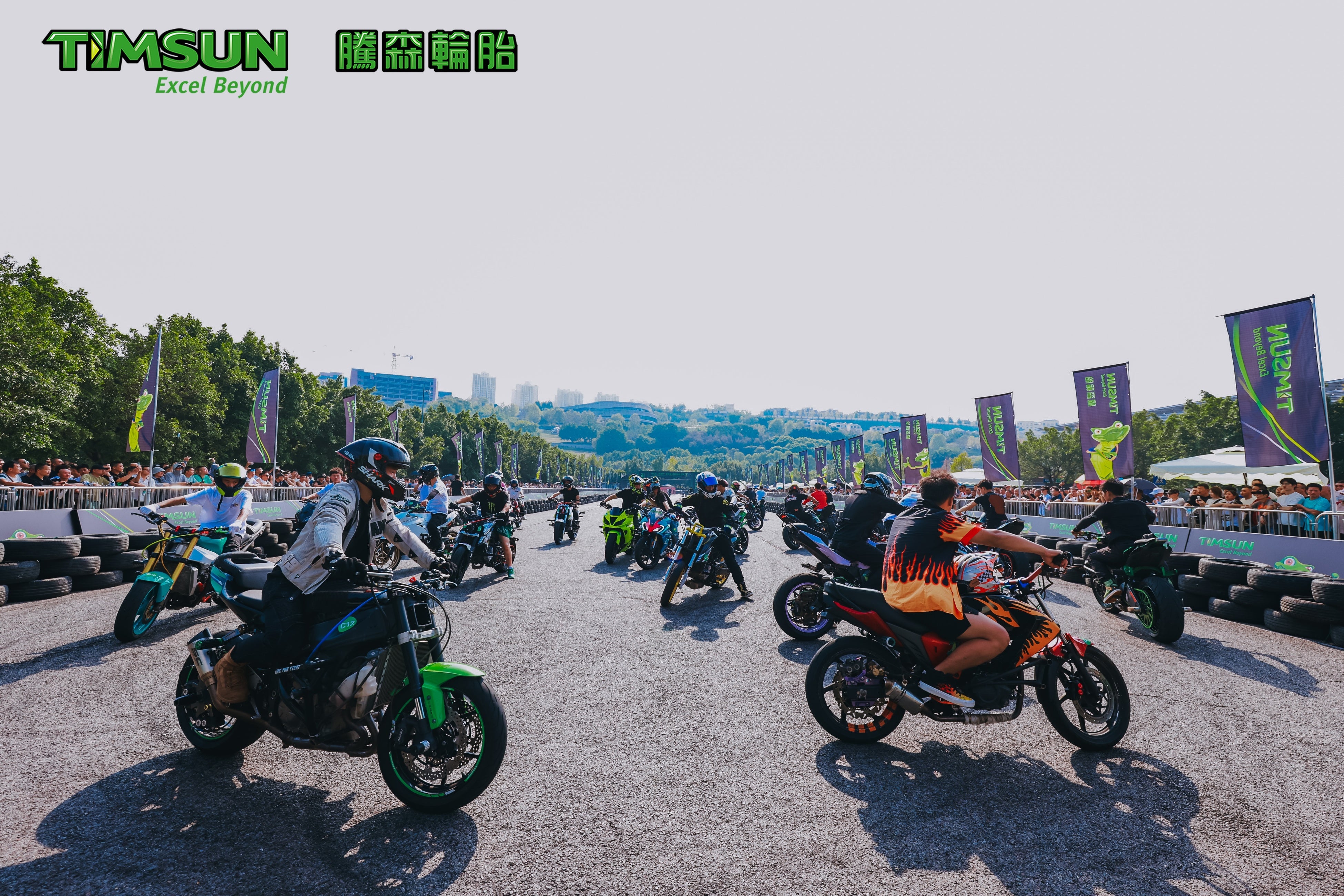 TIMSUNは現在、世界40ヵ国以上で流通するグローバルタイヤブランドであり、海外ではTIMSUNを冠した展示会が開催されるなど、ブランドとしての存在感を拡大しています。また、海外イベントではXゲーム系のトップライダーが参加するなど、パフォーマンス領域においても注目を集めており、単なるコストパフォーマンスタイヤの枠を超えたブランドへと進化しています。