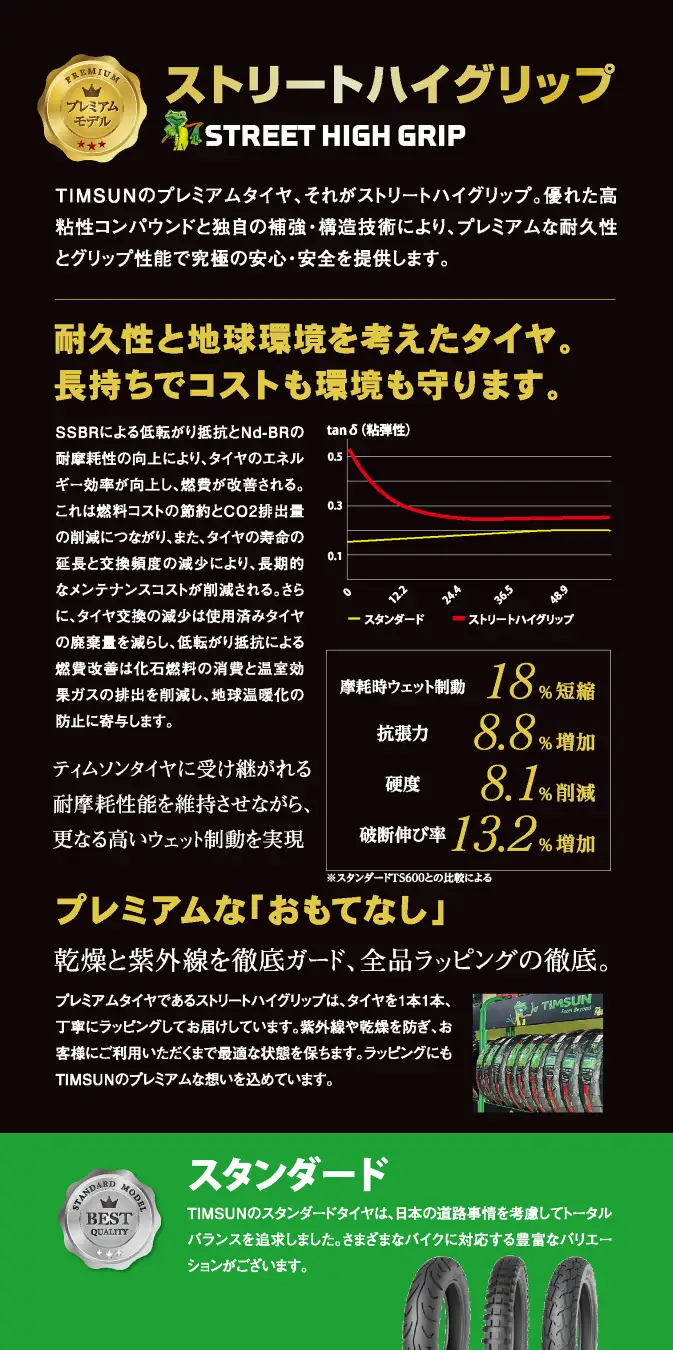 TIMSUNのストリートハイグリップシリーズは、こうした日本の使用環境に適した性能を備えています。