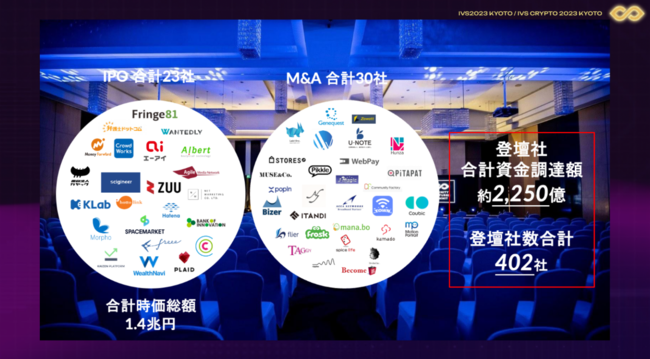 2007年より開催しているIVSは、これまで日本最大級のスタートアップの経営者カンファレンスとして、スタートアップエコシステムに貢献してきました。特に「IVS LAUNCHPAD」は、起業家の登竜門と呼ばれるようになり、過去に登壇してきた企業からは数多くの上場企業やM&Aも生まれています。
